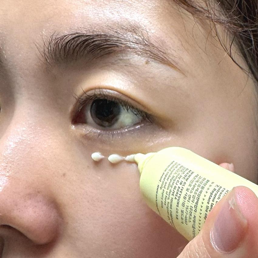 بعد از شستوشو و استفاده از تونر و سرم، مقدار کمی از کرم را روی پوست اطراف چشم بزنید و بهآرامی با نوک انگشت حلقه ماساژ دهید تا جذب شود.