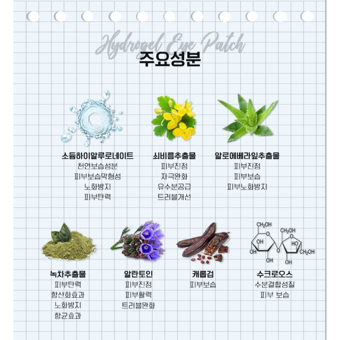هیالورونیک اسید، که به خاطر خواص مرطوبکنندگی قویاش شناخته شده است. فواید: این پچها به آبرسانی و صاف کردن پوست اطراف چشم کمک میکنند، ظاهر خطوط ریز و چین و چروک را کاهش میدهند و میتوانند به روشنتر شدن ناحیه زیر چشم کمک کنند